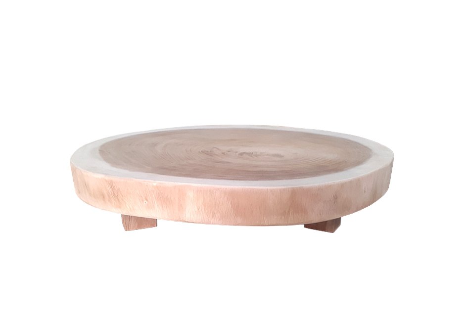 Coffee table made of natural mungur wood. Available in dimensions Ø80x18h cm.