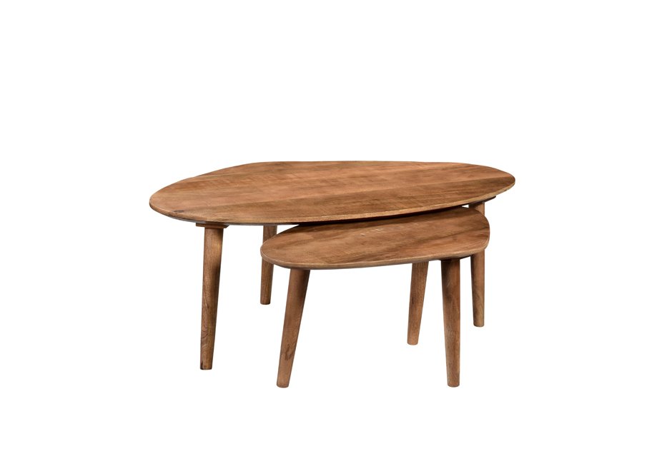 Coffee tables (set of 2) made of mango wood in natural shade. Available in dimensions 110x60x42h cm and 74x43x38h cm.