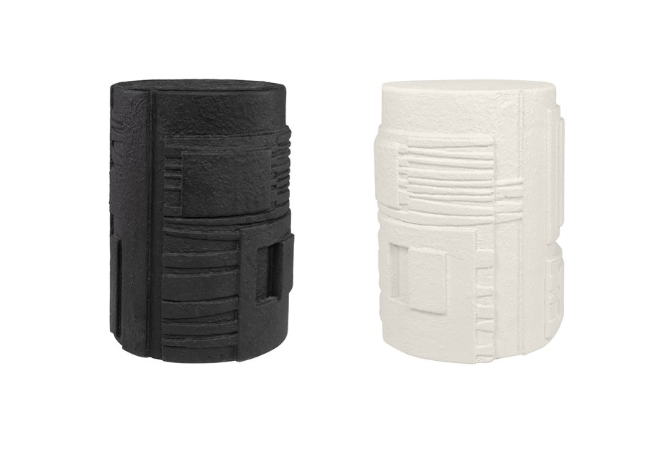 Concrete side table with special designs, in black and white. Available in dimensions Ø43x61h cm.