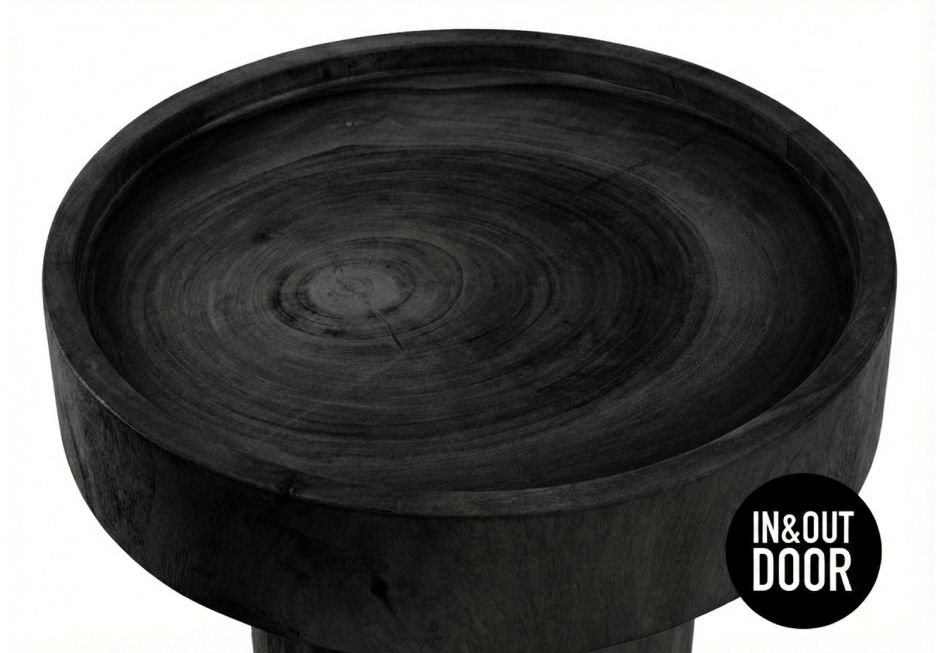 Side table for indoor and covered outdoor space, made of black suar wood. Available in dimensions: Ø40x45hcm.