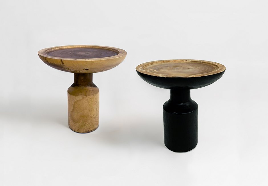 Side table made of solid suar wood in natural color and black with natural surface. Available in dimensions Ø50x50h cm.