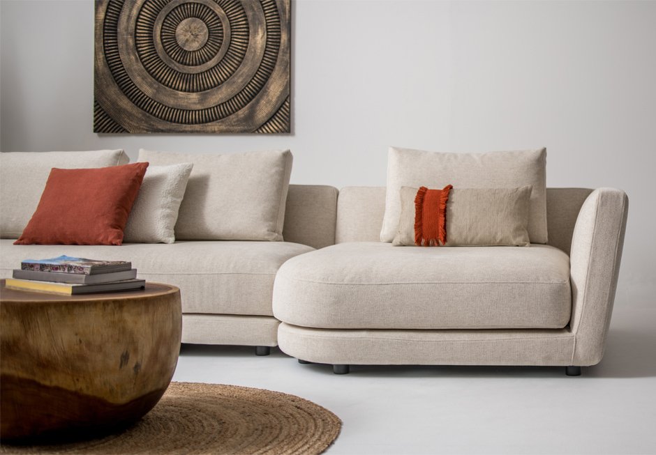 Sofa in dimensions 335×135 cm, with a wide variety of fabrics, which are removed for cleaning or replacement.