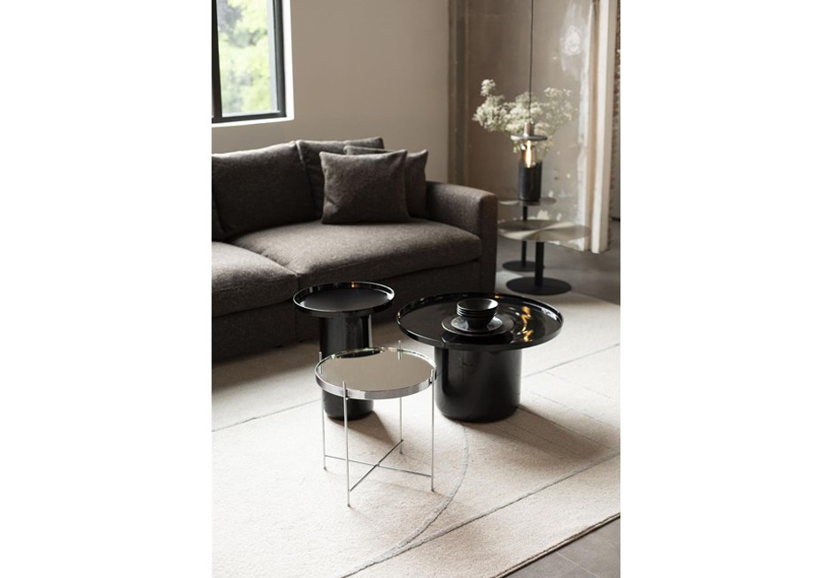 Coffee table with detachable mirror on the surface and folding iron copper-plated base. Available in dimensions Ø43x45h cm, from the initial price 178€ to the final offer price 100€.