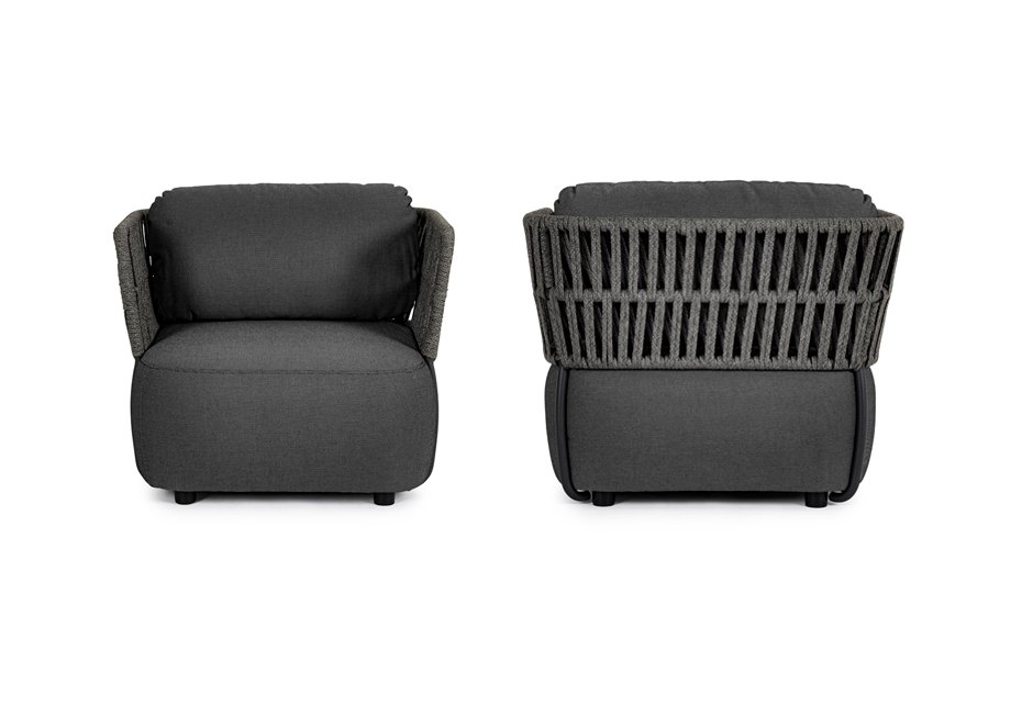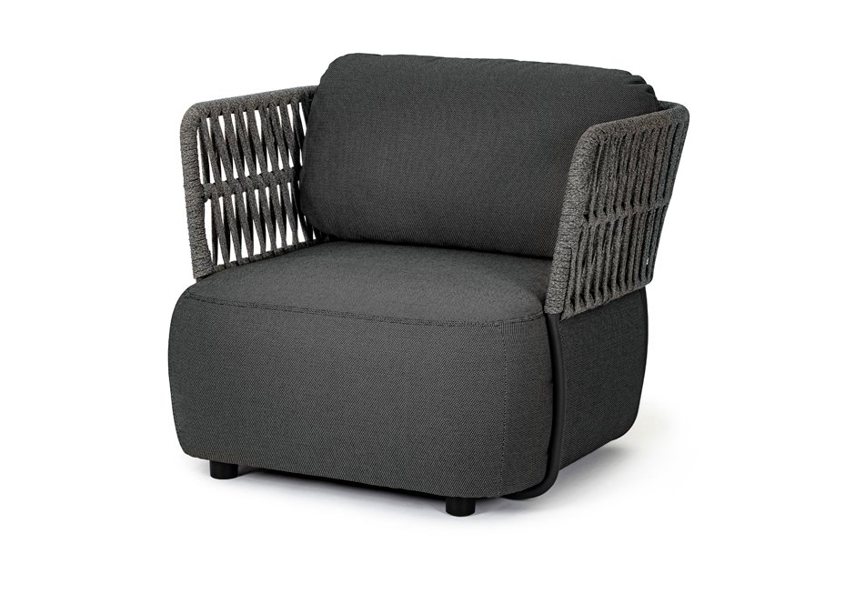 Outdoor armchair dressed, with aluminum frame. It is available in dimensions 92x86x79h cm, from the initial price of 1.800€ to the final offer price of 540€.