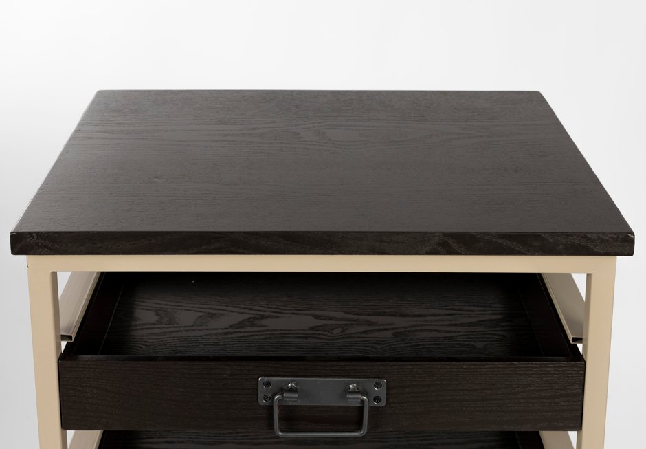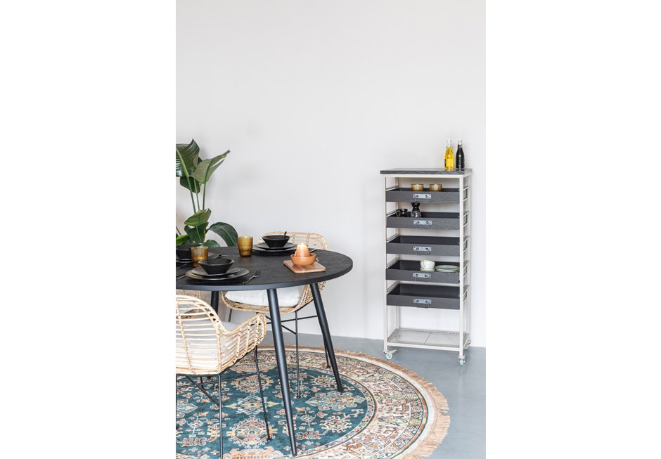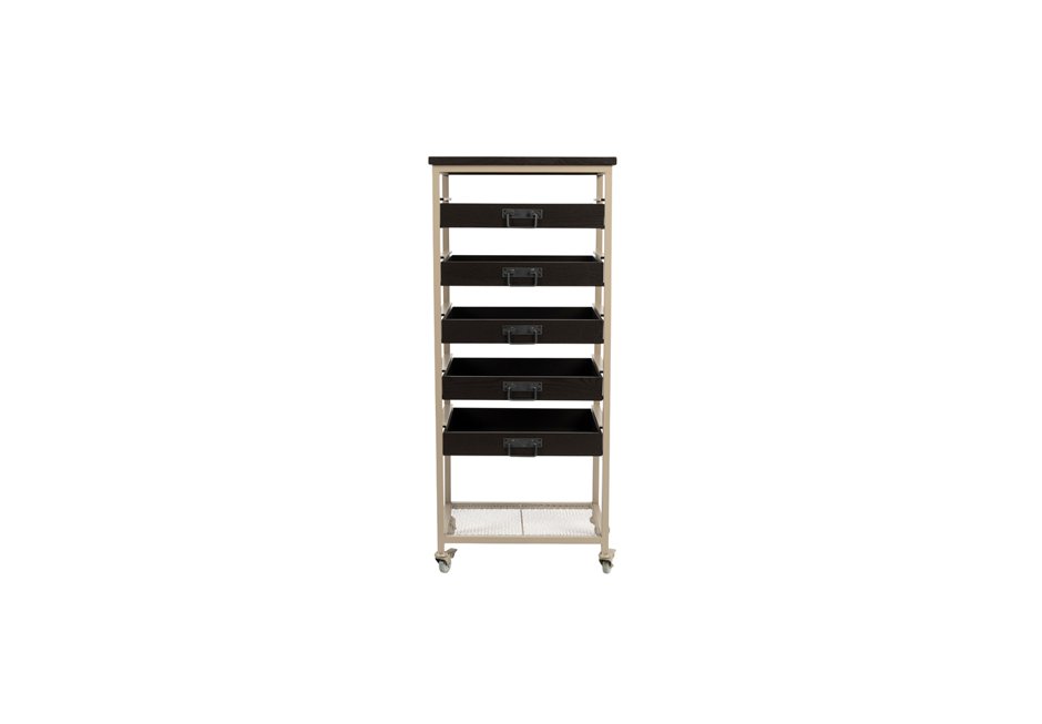 Chest of drawers made of metal frame with drawers made of lacquered wood in black shade. Available in dimensions: 52x38x120h cm.