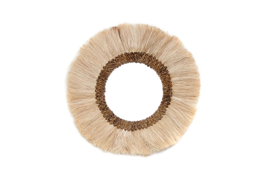 Mirror handmade from natural materials in natural shade. Its external dimension is Ø60 cm and the diameter of the mirror Ø27 cm.
