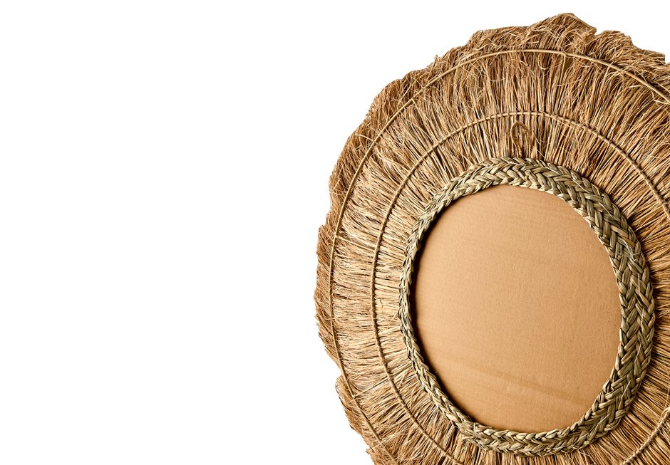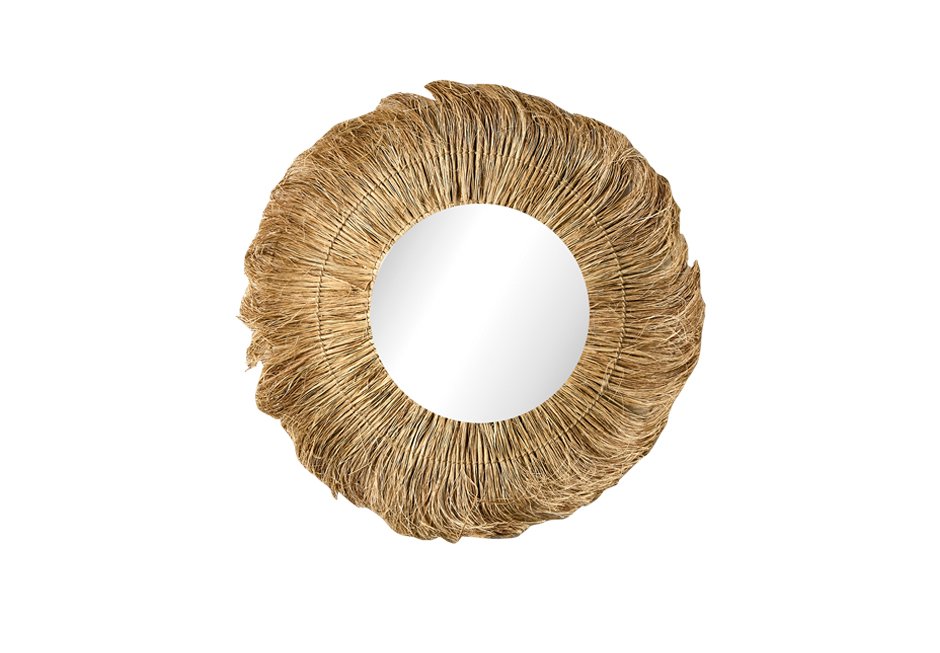 Mirror with frame made of natural materials. Available in dimensions Ø70 cm.
