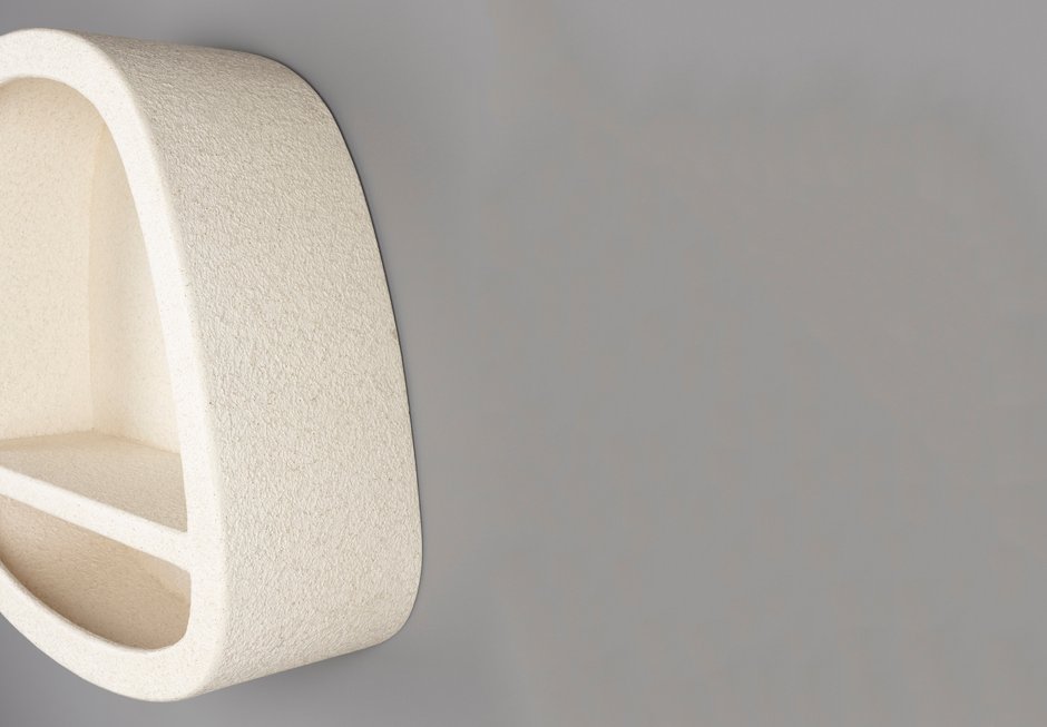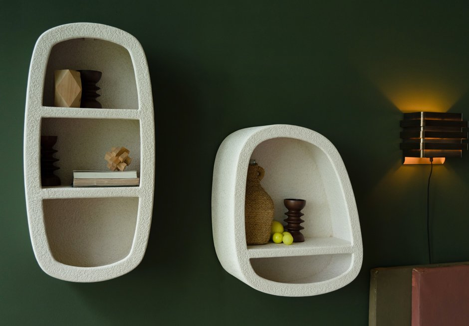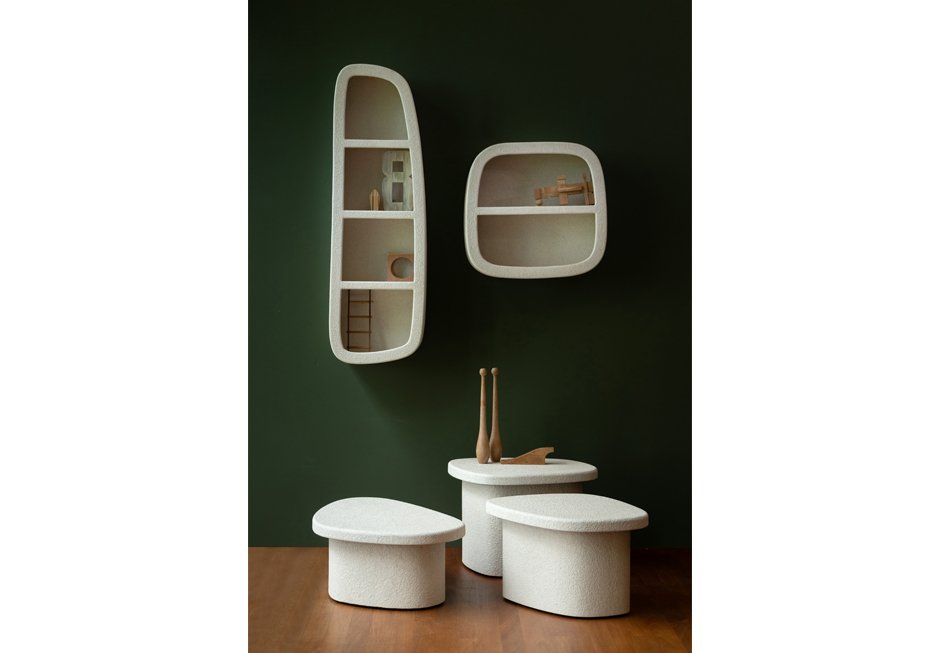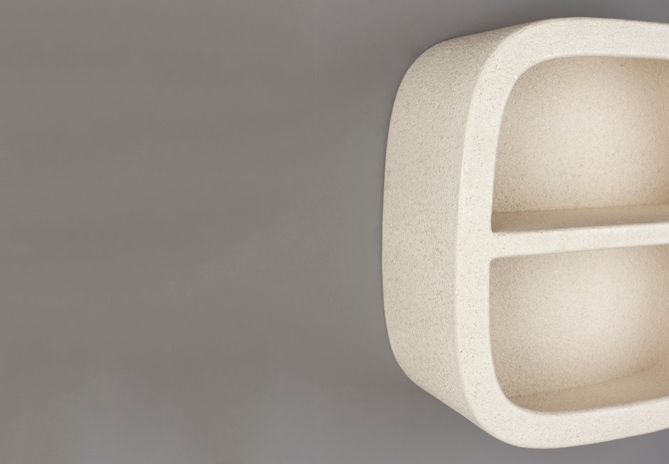 Wall shelf with one shelf, made of plywood and ceramic materials. Available in dimensions: