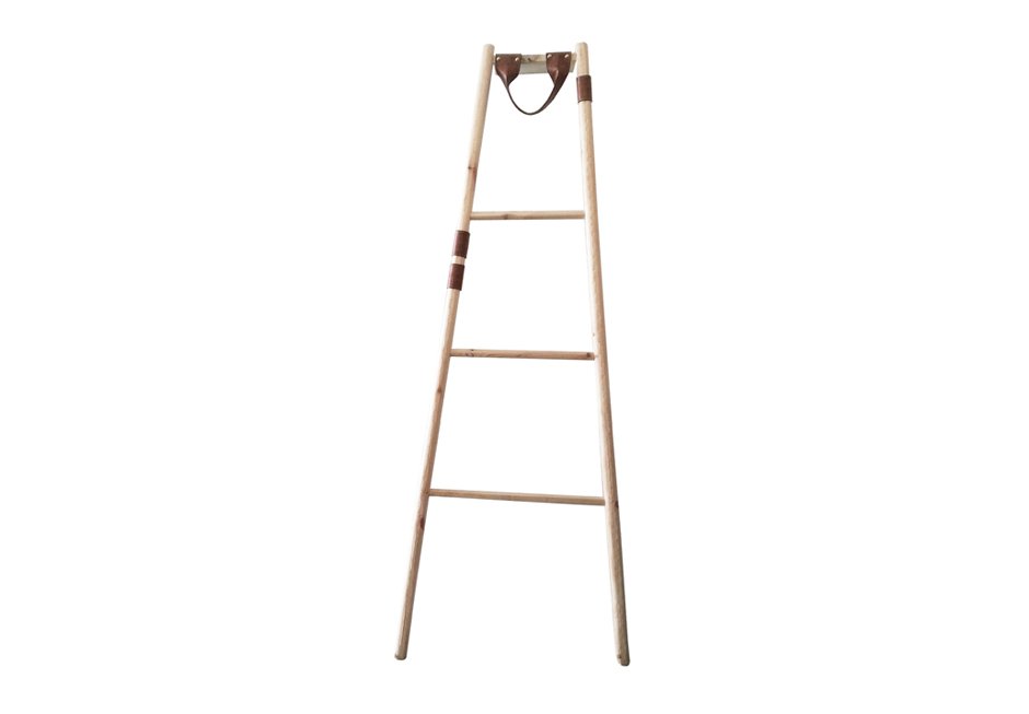 Wooden decorative staircase/hanger with leather details. Available in dimensions: 25/55x150h cm.
