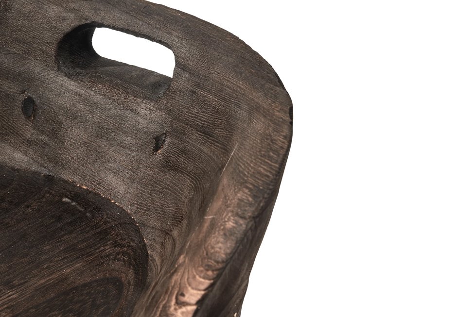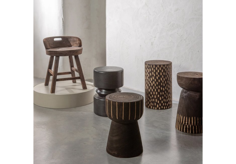 Stool made of paulownia wood in dark brown shade.