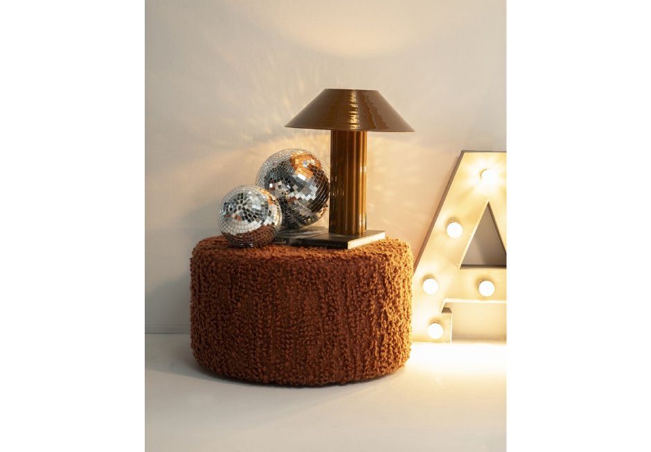 Stool made of polyester material in beige, taupe and terracotta shades.