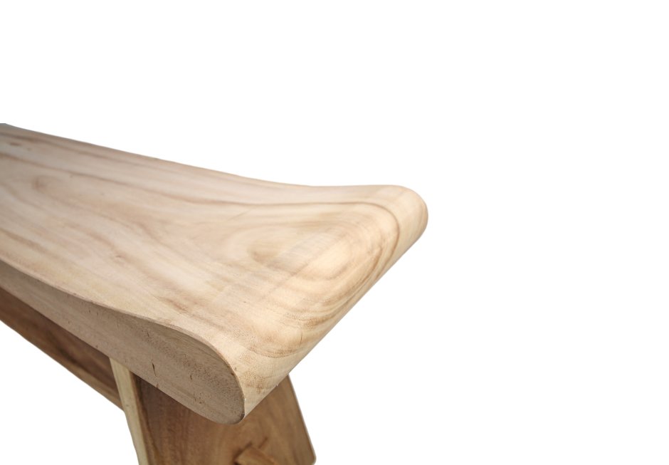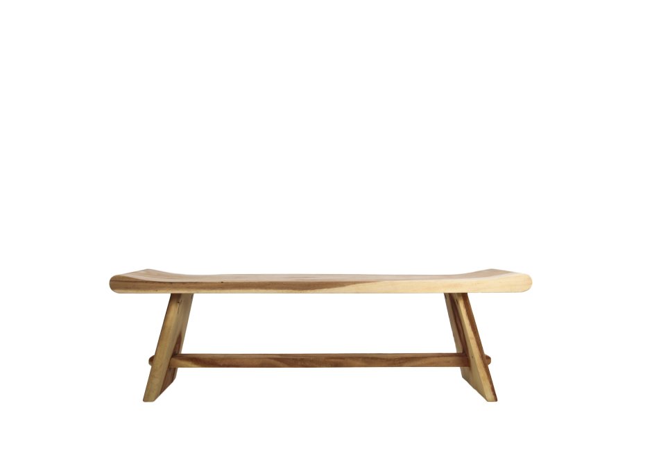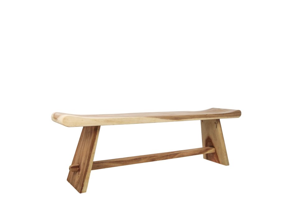 Bench made of natural mungur wood. Available in dimensions: 120x30x47h cm.