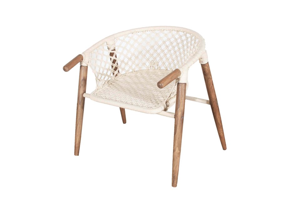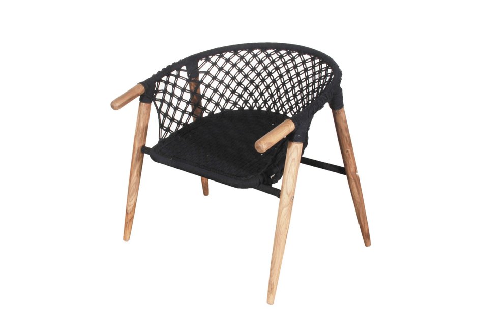 Chair with wooden frame and rope knit in black and white shade. Available in dimensions 67x69x71h cm.