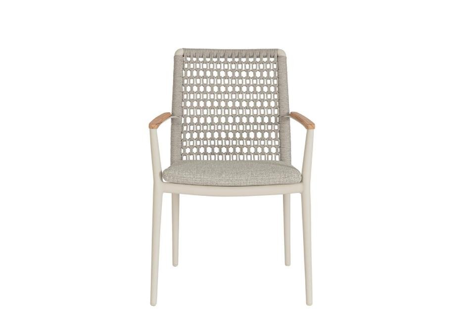 Chair made of aluminum frame with knitted back and cushion with removable cover.