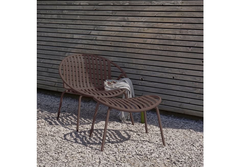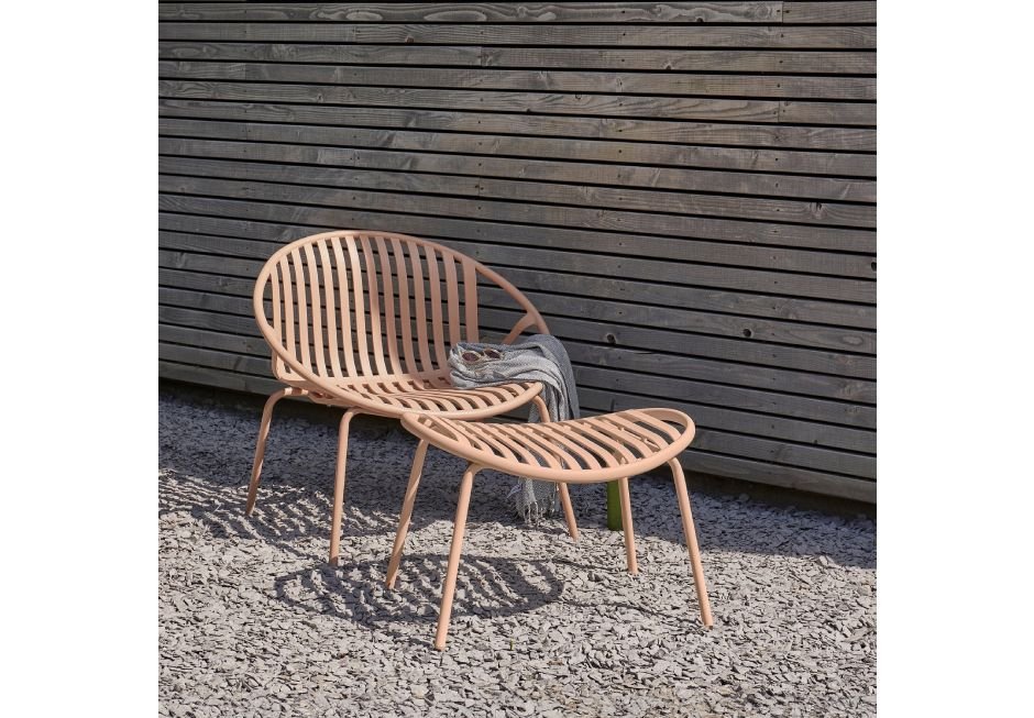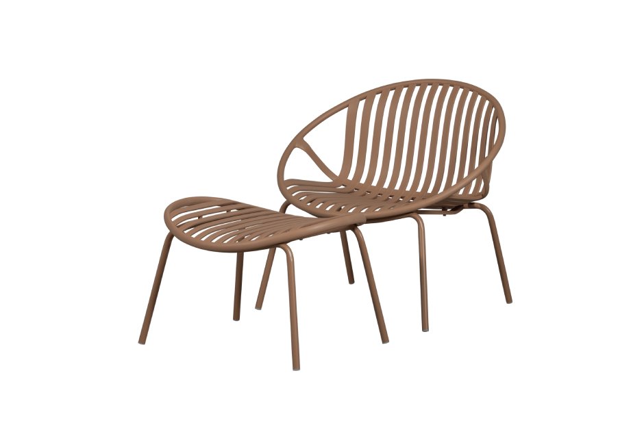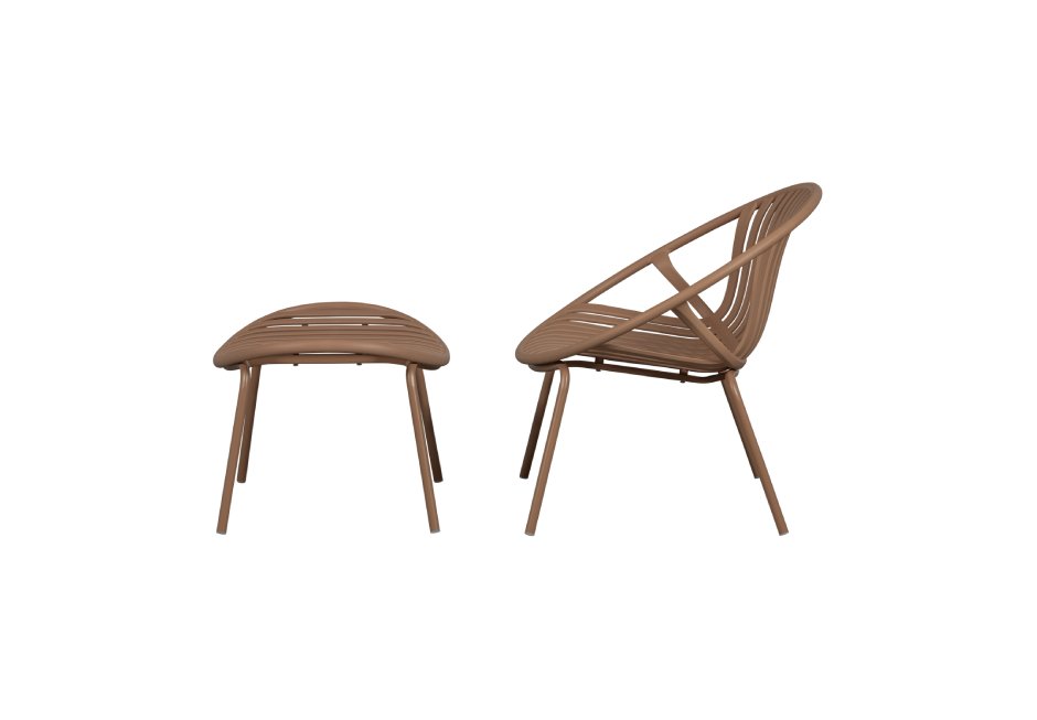 Armchair and footrest made of aluminum in salmon pink and purple brown shade. Available in dimensions: 81x72x73cm.