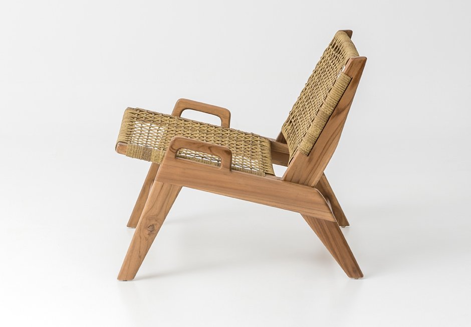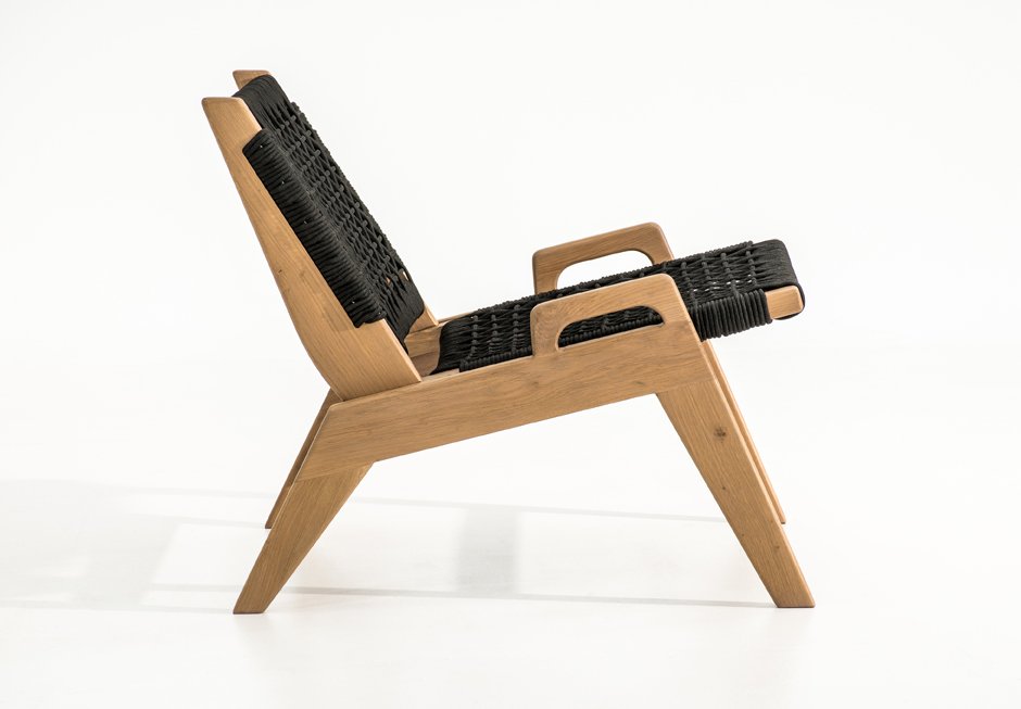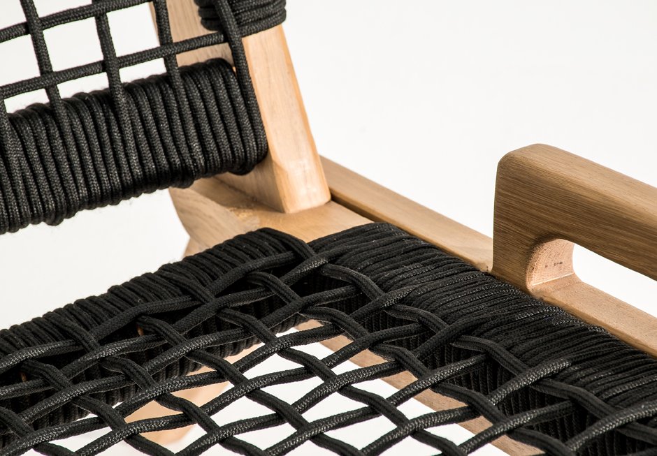 Armchair made of solid wooden frame with knitted seat and backrest. Available in dimensions 66x80x66h cm, in natural and black color the knit.