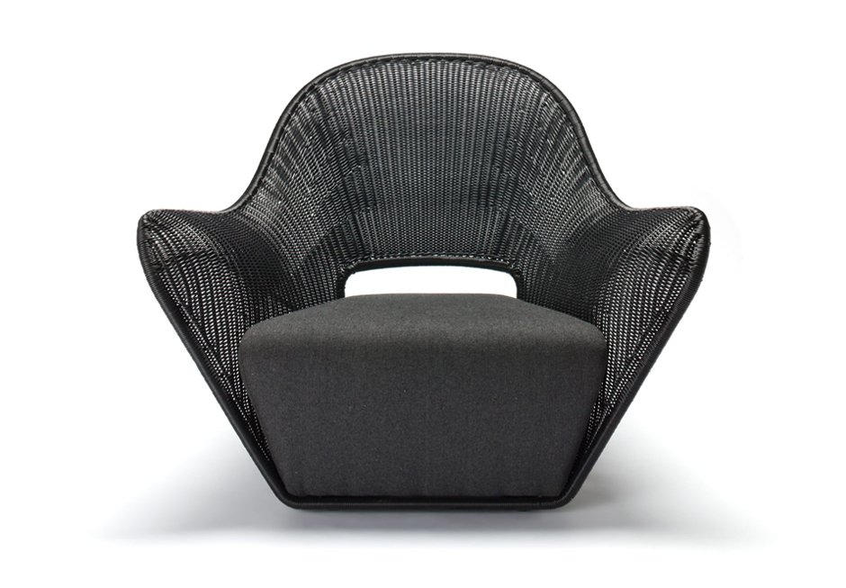 Outdoor armchair with metal frame and fabric seat in black color. Available in dimensions 98x89x83,5h cm and seat height 38h cm.
