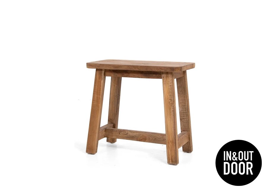 Teak wood stools. It is also suitable for a covered outdoor space.