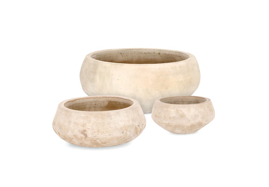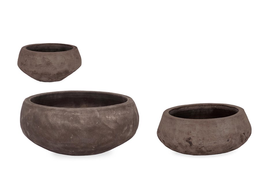 Outdoor vases (set of 3) made of terracotta with a hole at the bottom in light and brown color. Available in dimensions Ø22x12h cm, Ø32x16h cm and Ø40x19h cm.