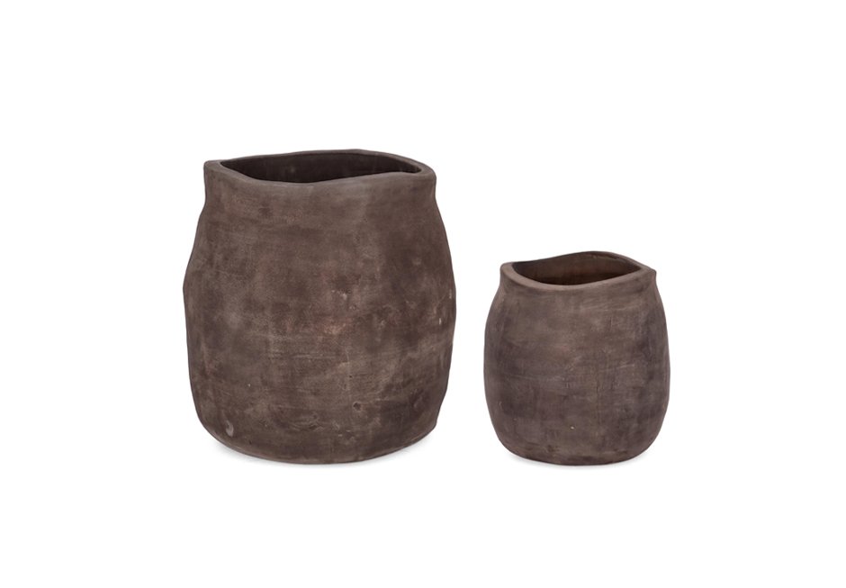 Outdoor vases (set of 2) made of terracotta with a hole at the bottom in dark and light color. Available in dimensions Ø33x32h cm and Ø47x49h cm.