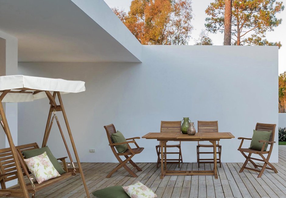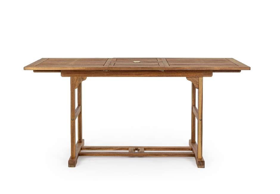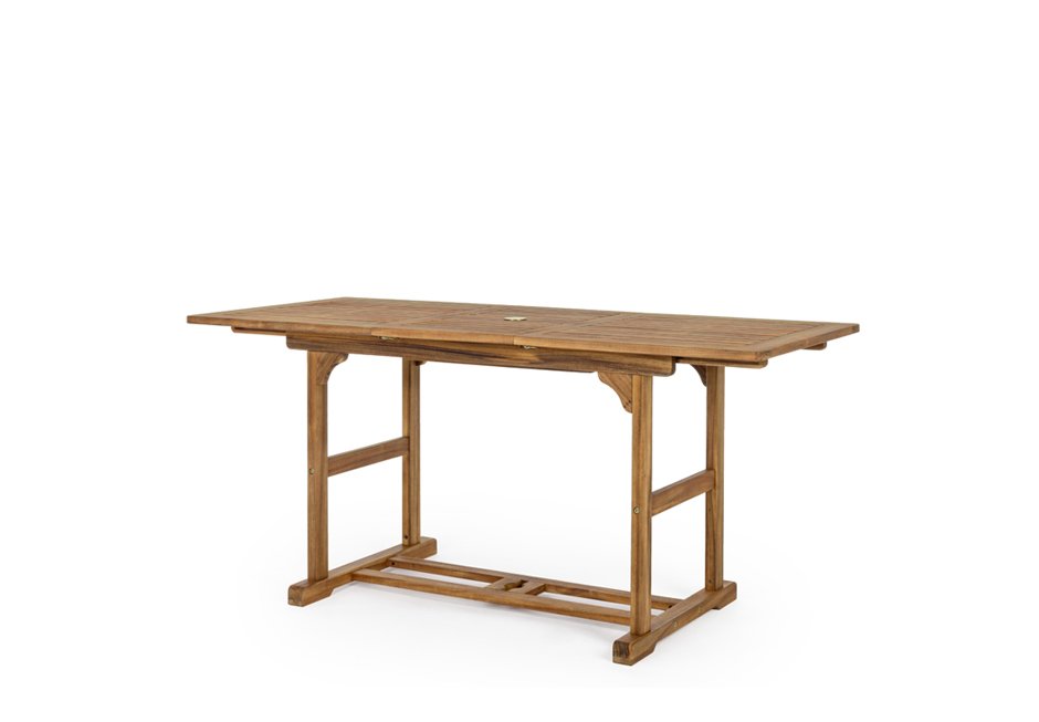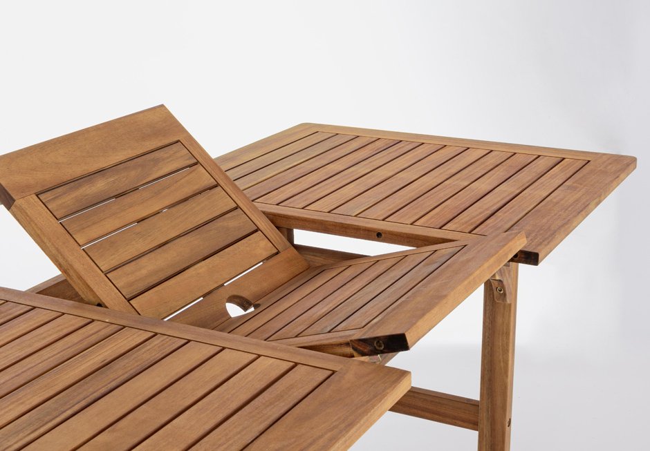 Outdoor table made of acacia wood with folding surface. Available in dimensions 120/160x70x74h cm.