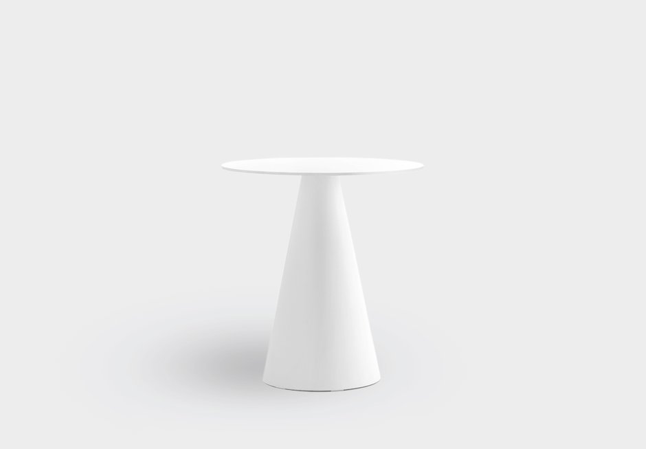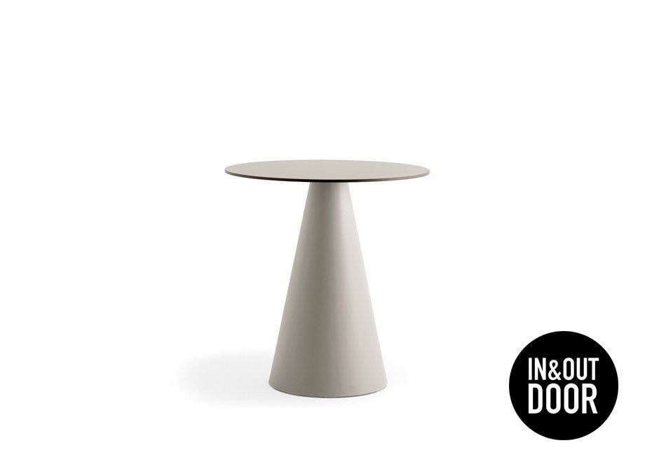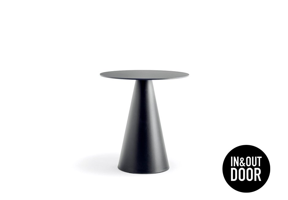 Table with polypropylene base and HPL surface in black, white, ecru and dark gray shade. Available in dimensions 70x70 cm (for square surface) or Ø80 cm (for round surface) and height 72 cm.