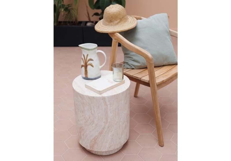 Side table made of magnesium oxyde. Available in dimensions Ø35,5x45h cm.