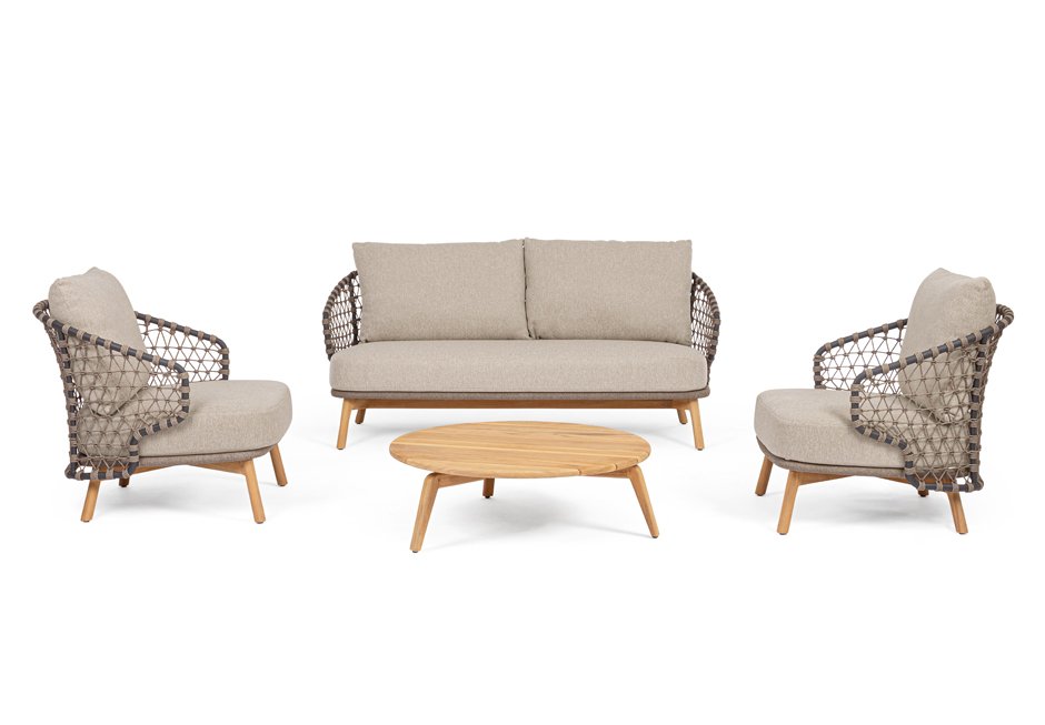 Outdoor table made of teak wood. Available in dimensions Ø90x30h cm.