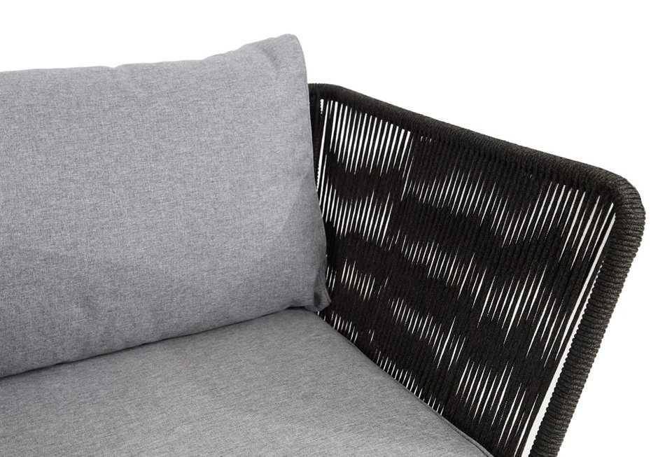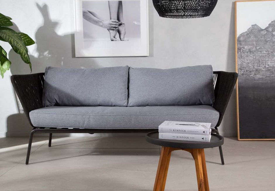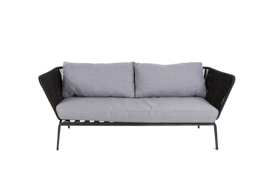 Sofa made of metal frame and knit in anthracite color. Available in dimensions 184x76x73h cm.
