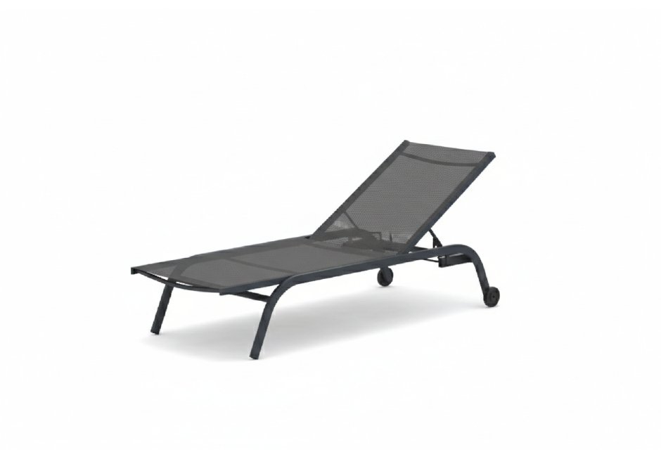 Sunbed in ancient grey frame and black net. Available in dimensions: 192x81x35hcm.