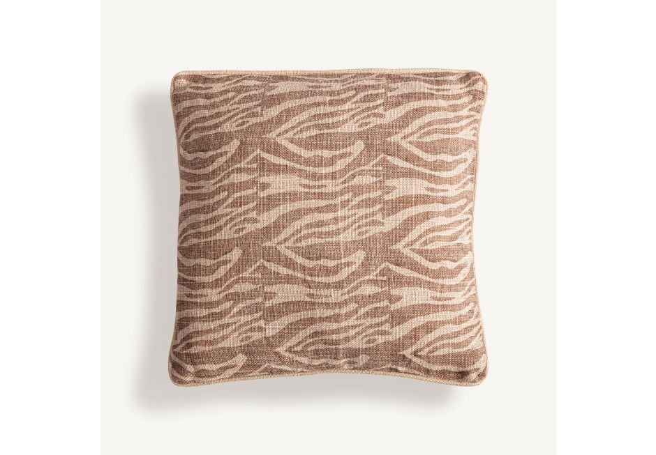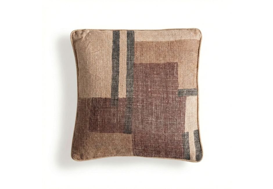 Decorative pillow made of jute in beige shade with brown natural fiber. Available in dimensions: 45x13x45cm.