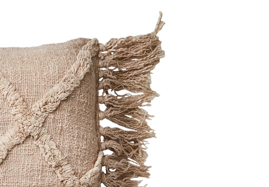 Decorative pillow with fringes.