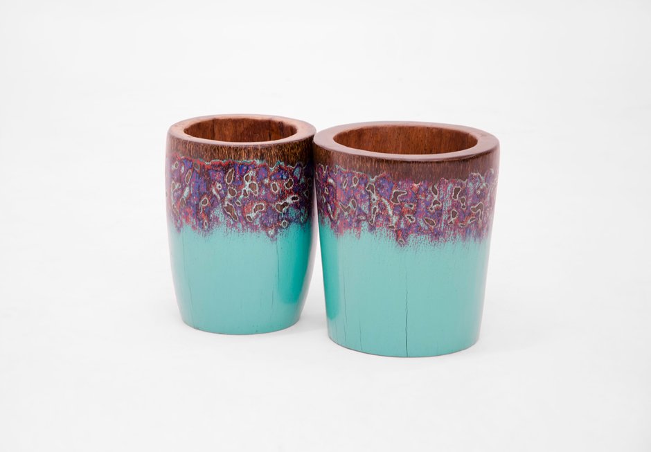 Διακοσμητικά βάζα / κασπώ από ξύλο με τεχνοτροπία. Διατίθενται σε διαστάσεις: Ø23x30h & Ø27x30h cm.