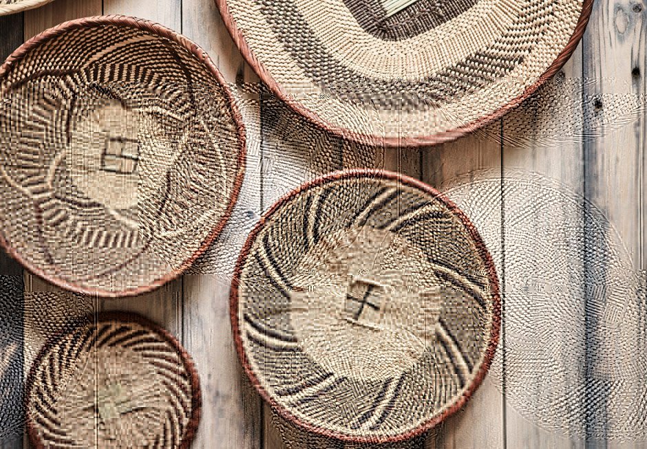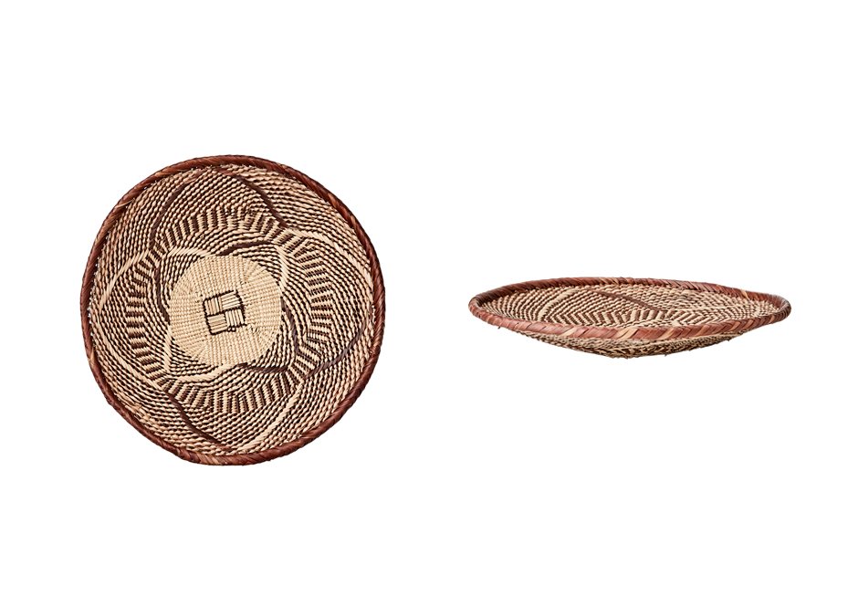 Διακοσμητικός δίσκος με χειροποίητη πλέξη από φυσικό υλικό. Διατίθεται σε διαστάσεις Ø30x5h cm.