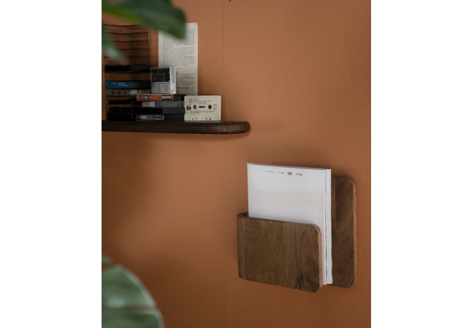 Διακοσμητικό τοίχου για αποθήκευση βιβλίων από ξύλο mango σε natural, καφέ και μαύρη απόχρωση.