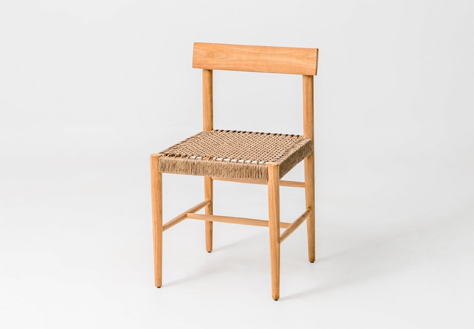 Καρέκλα από ξύλο teak και κάθισμα με πλέξη από σχοινί. Διατίθεται σε διαστάσεις: 48x49x79h cm.