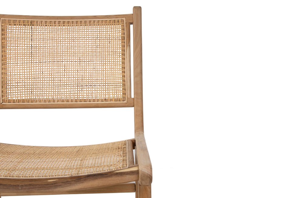 Καρέκλα, κατάλληλη για εσωτερικό και για στεγασμένο εξωτερικό χώρο, από ξύλο teak με πλέξη από rattan στην πλάτη και στο κάθισμα. Διατίθεται σε διαστάσεις 50x60x88h cm.