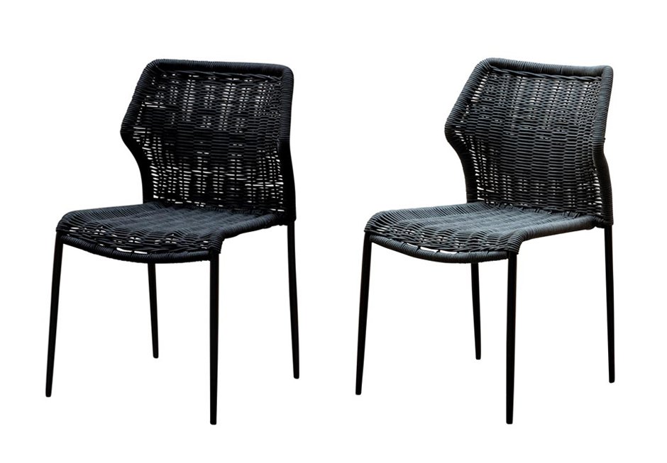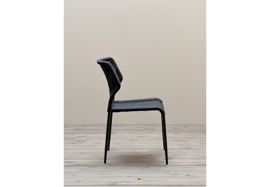 Καρέκλα από μαύρο μεταλλικό σκελετό και πλέξη από σχοινί σε μαύρη και σκούρα γκρι απόχρωση. Διατίθεται σε διαστάσεις 45x43x82h cm.