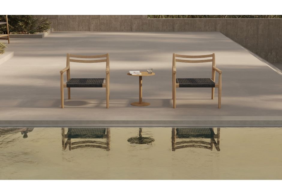 Πολυθρόνα από ξυλεία teak με πλέξη σε χρώμα καρυδιάς. Διατίθεται σε διαστάσεις: 73x75x70cm.