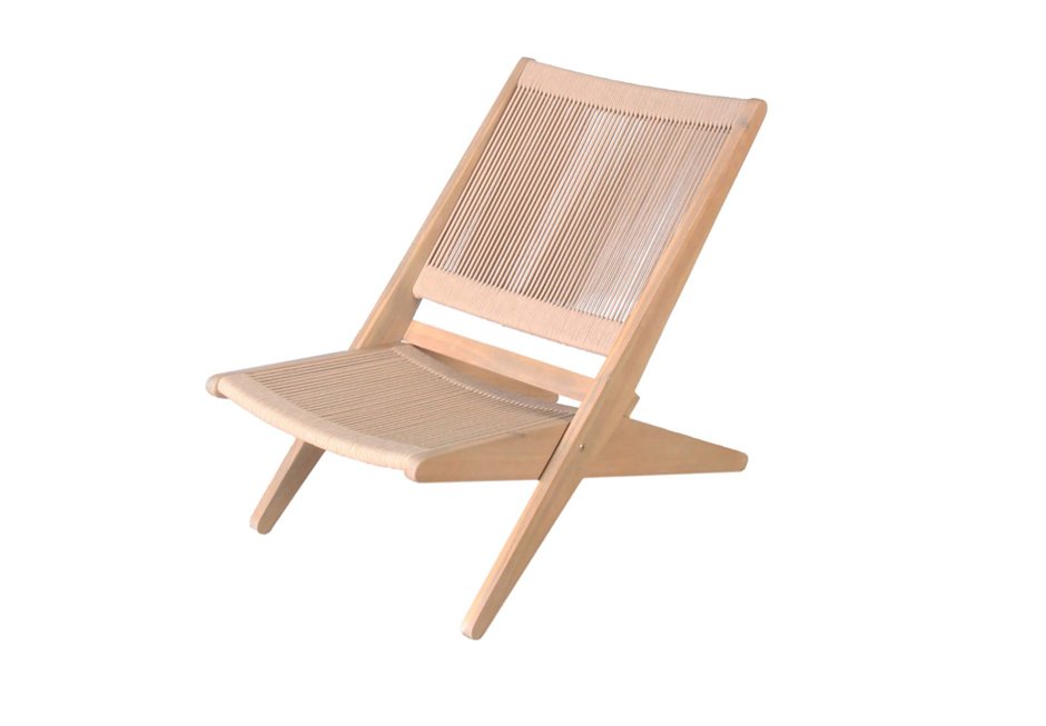 Ξύλινη πολυθρόνα εξωτερικού χώρου με πλέξη στην πλάτη και στο κάθισμα. Διατίθεται σε διαστάσεις 57x76x90h cm.