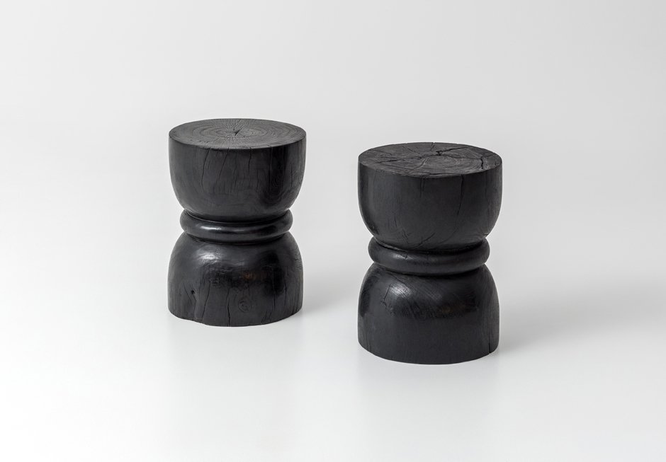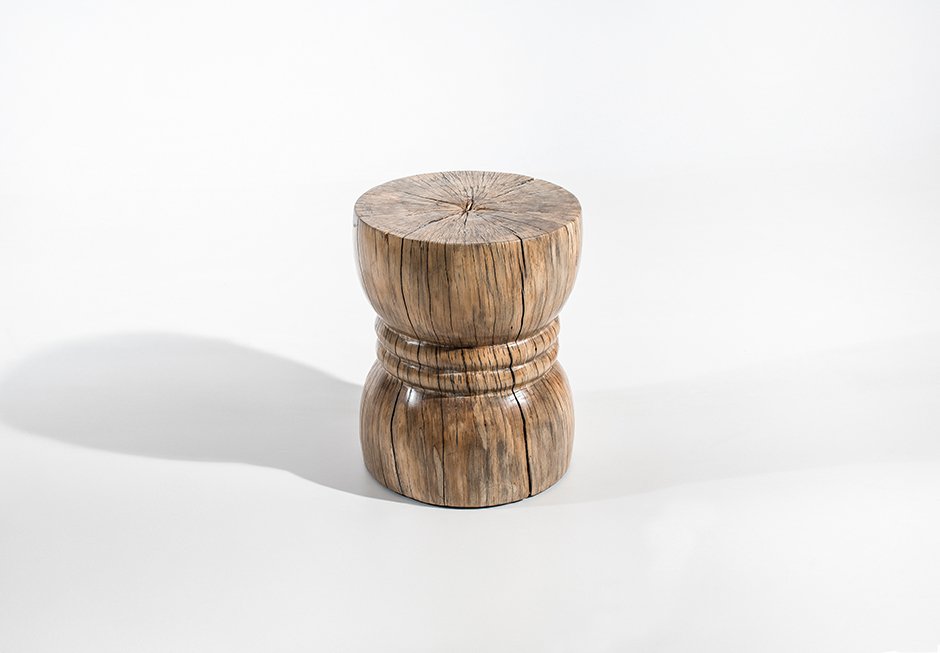Βοηθητικό τραπεζάκι από μασίφ ξύλο τικ σε φυσική ή μαύρη απόχρωση. Διατίθεται σε διαστάσεις Ø35x45h cm.