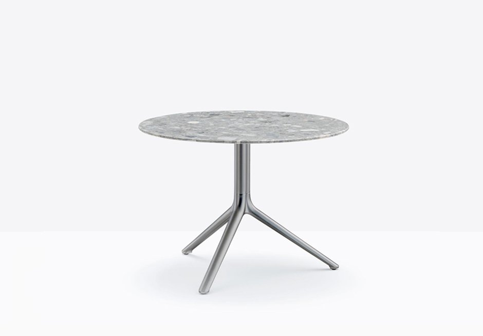 Τραπεζάκι από αλουμίνιο με επιφάνεια από υφή μαρμάρου. Διατίθεται σε διάφορες αποχρώσεις με διαστάσεις Ø70x50h cm.