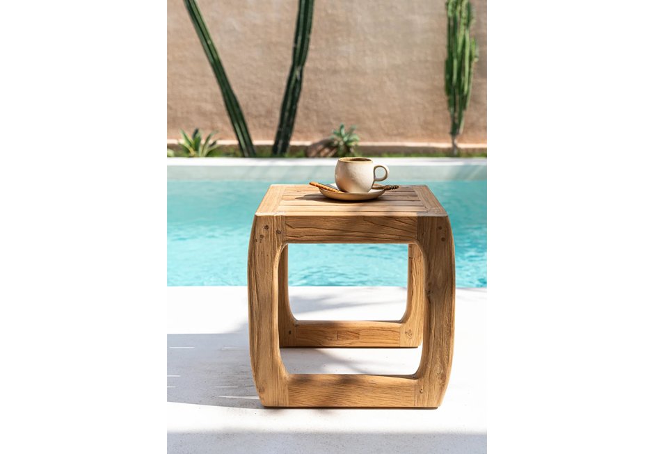 Βοηθητικό τραπεζάκι από ανακυκλωμένο ξύλο teak για εξωτερικό χώρο γενικά καθώς και για στεγασμένο. Διατίθεται σε διαστάσεις 38x38x40h cm.