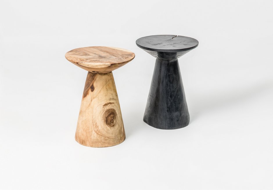 Βοηθητικό τραπεζάκι από μασίφ ξύλο suar σε μαύρο και φυσικό χρώμα. Διατίθεται σε διαστάσεις: Ø40x50h cm.