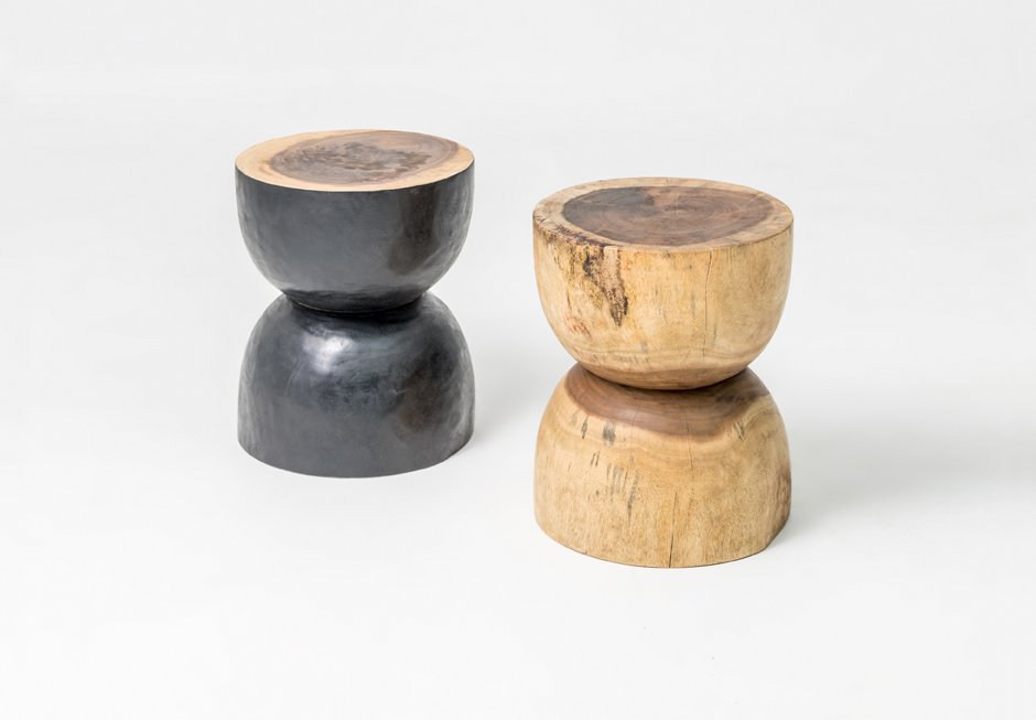 Βοηθητικό τραπεζάκι από μασίφ ξύλο suar σε μαύρο και φυσικό χρώμα. Διατίθεται σε διαστάσεις Ø40x45h cm.