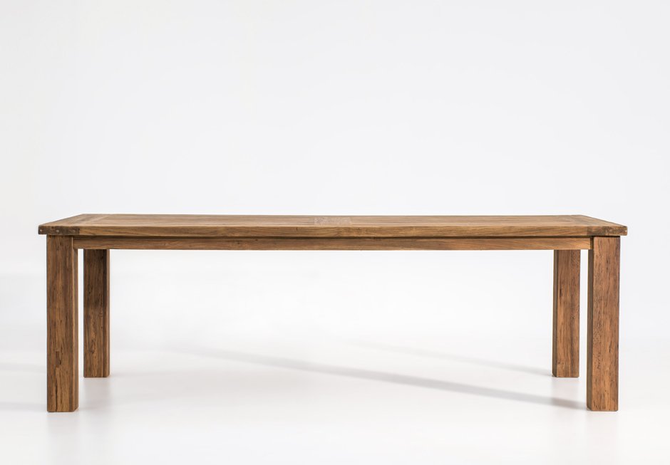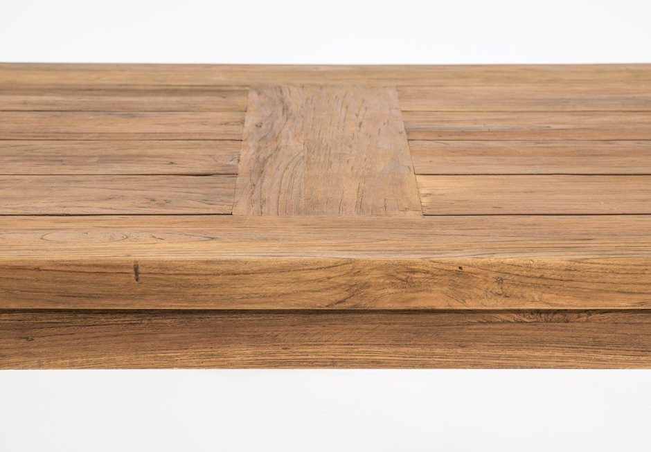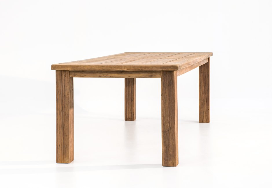 Τραπέζι με επιφάνεια και βάση από τικ ξύλο. Διατίθεται σε διαστάσεις 200-220-260-300x100x78h cm.