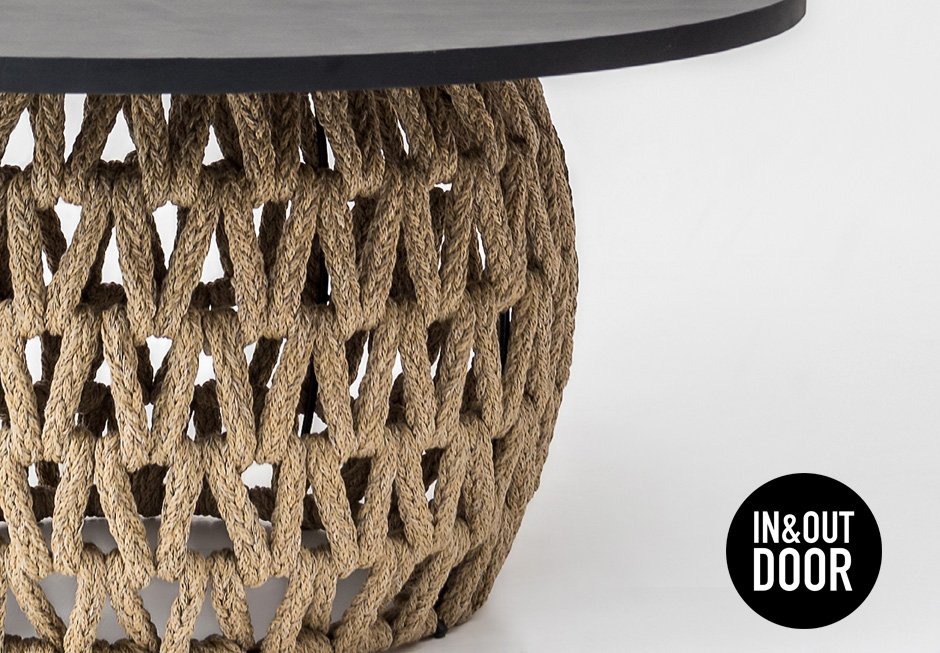 Ροτόντα σε διάσταση Ø150 cm, με επιφάνεια από τσιμεντοκονία και μεταλλική βάση με χειροποίητη πλέξη. Κατόπιν παραγγελίας διατίθεται σε διαστάσεις: Ø110-150 cm.