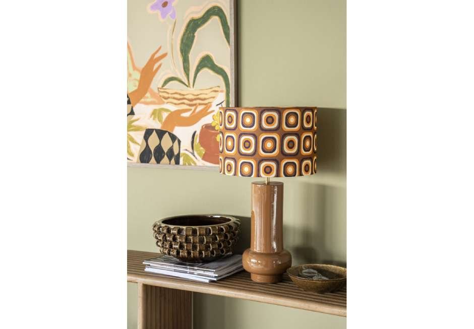 Επιτραπέζιο φωτιστικό σε mustard απόχρωση. Διατίθεται σε διαστάσεις: 30x30x54cm.