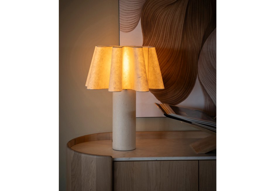 Επιτραπέζιο φωτιστικό από χειροποίητο χαρτί και μεταλλικό καλώδιο.