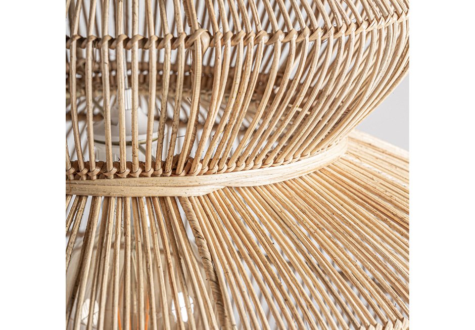 Φωτιστικό οροφής από φυσικό υλικό rattan. Διατίθεται σε διαστάσεις: Ø60x92cm και Ø82x120cm.